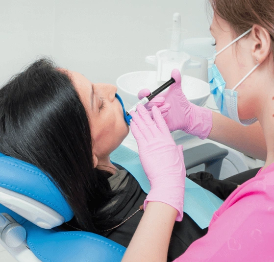 - Процесс отбеливания: В зависимости от выбранной процедуры, на зубы наносится отбеливающий гель или активируется лазер, что позволяет эффективно осветлить эмаль.
